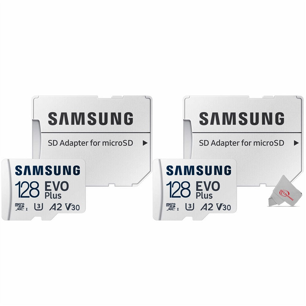The Kit Includes: 2X Samsung EVO Plus MicroSD 128GB, 130MBs Memory Card with Adapter