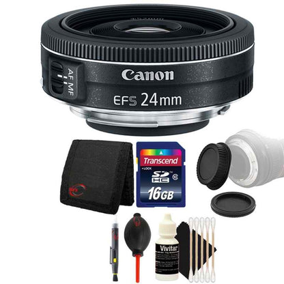 Characterized by a truly thin profile, along with an advanced autofocus motor, the EF-S 24mm f/2.8 STM Lens from Canon is a wide-angle prime designed for APS-C-size EOS DSLRs. Providing a 38mm-equivalent focal length, this lens takes on a slightly wider-than-normal perspective to benefit its use in a broad variety of shooting situations. A stepping motor AF system pairs well with cameras featuring the Movie Servo AF mode, where it will deliver fast, smooth, and nearly silent focusing performance that can instantly be manually overridden at any time. When coupled with a sophisticated optical design, this slim, lightweight, and versatile lens is an ideal take-everywhere option.