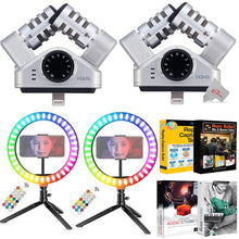 Vendor:ZoomTwo Zoom iQ6 Stereo X/Y Microphone for iOS Devices with Lightning Connector for iPhone iPad + Two Vivitar Vlog Essentials 10 Inch Full Color RGB LED Ring Light 360° Rotation + Music Maker Mix and Master Suite
