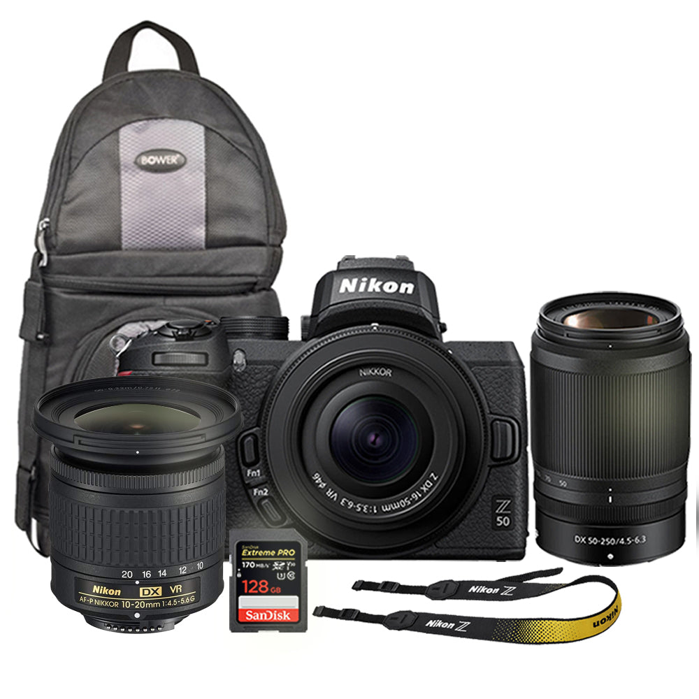 Nikon Z 50 Mirrorless Digital Camera with 16-50mm and 50-250mm Z VR + Nikon AF-P 10-20mm f4.5VR Lens + FTZ II Adapter Bundle