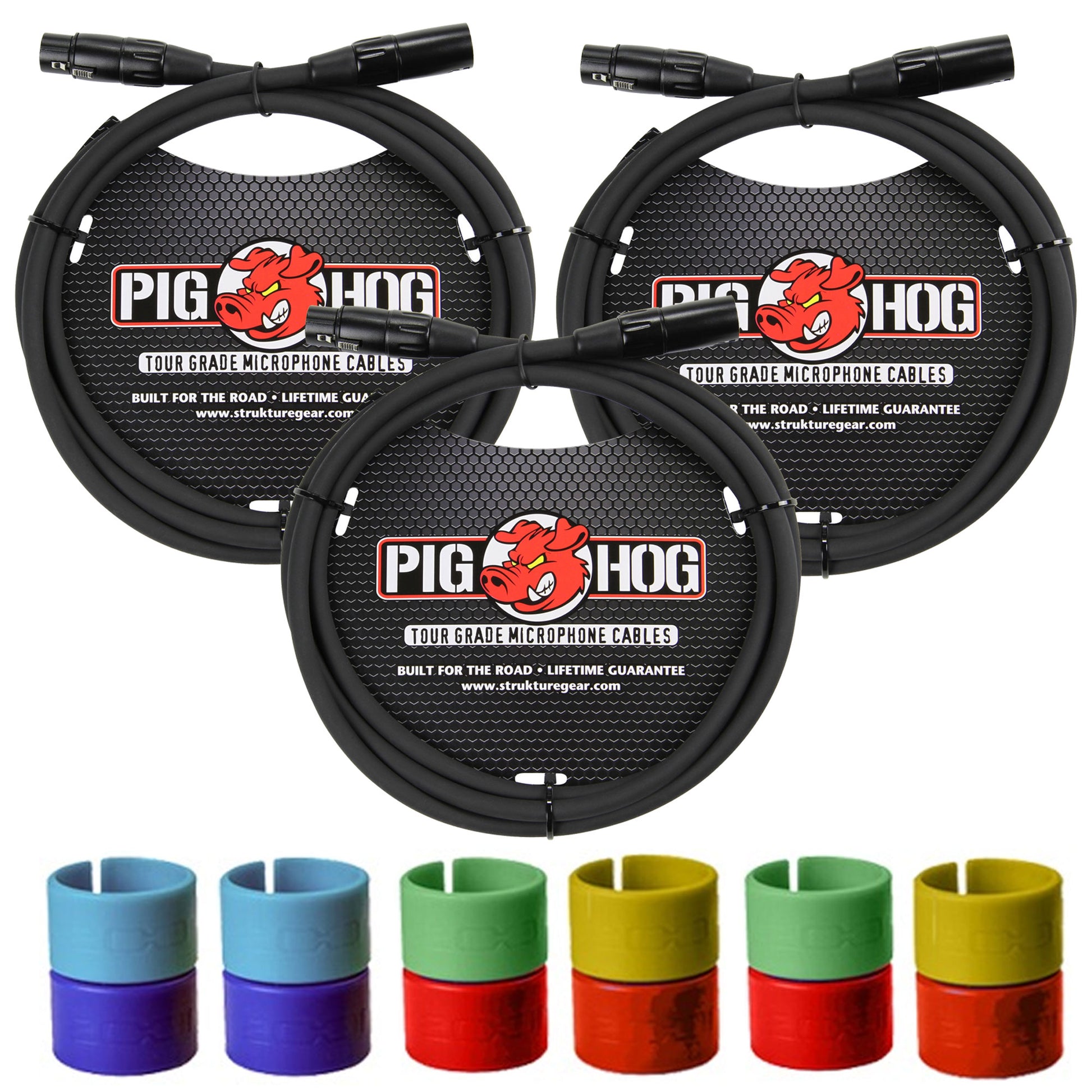 - 6x Pig Hog 8mm XLR Microphone Cable Male to Female 6 Ft Fully Balanced Premium Mic Cable