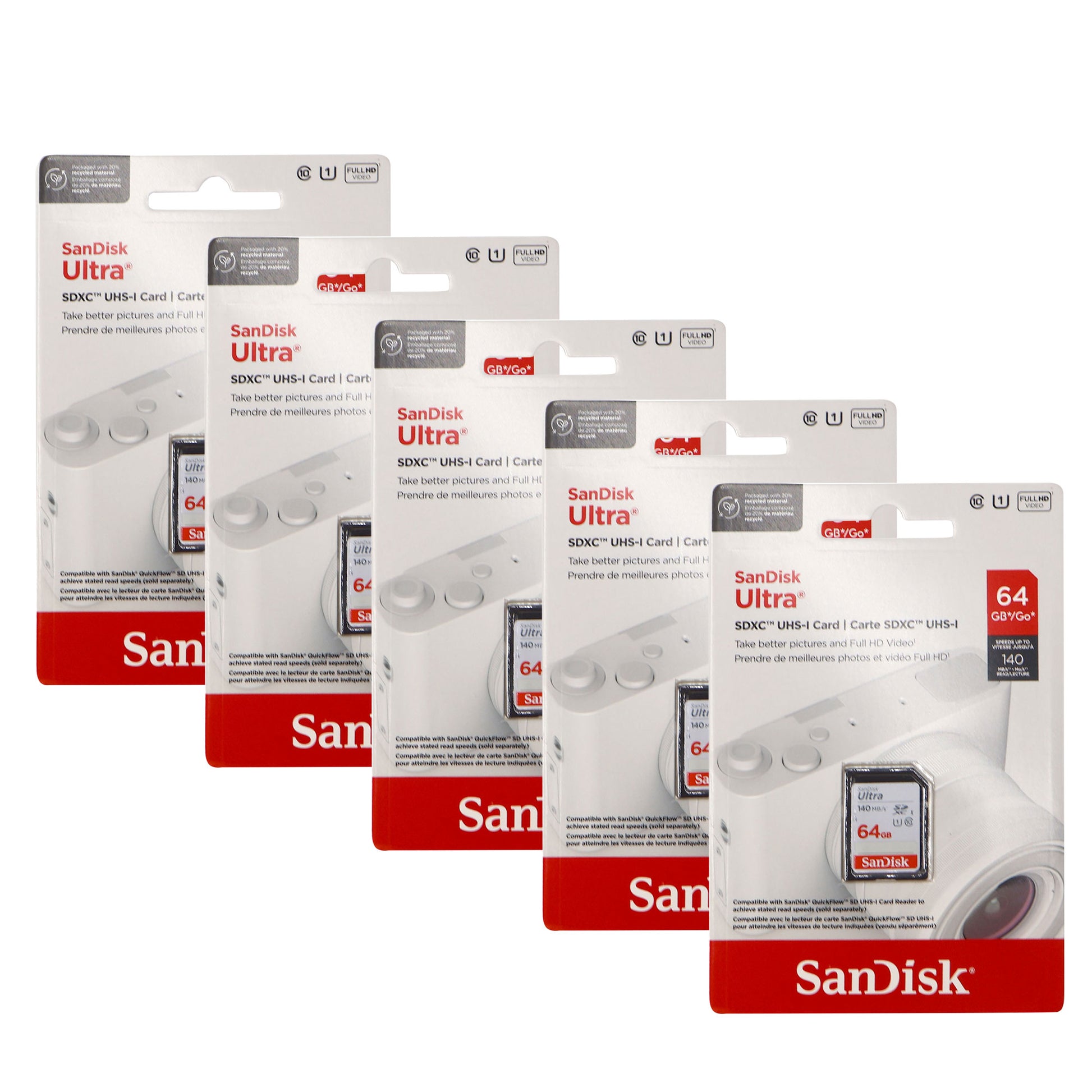 This Bundle from Teds Electronics includes: - 5x SanDisk 64GB Ultra SDXC UHS-I Memory Card - Up to 140MB/s, C10, U1, Full HD, SD Card - SDSDUNB-064G-GN6IN