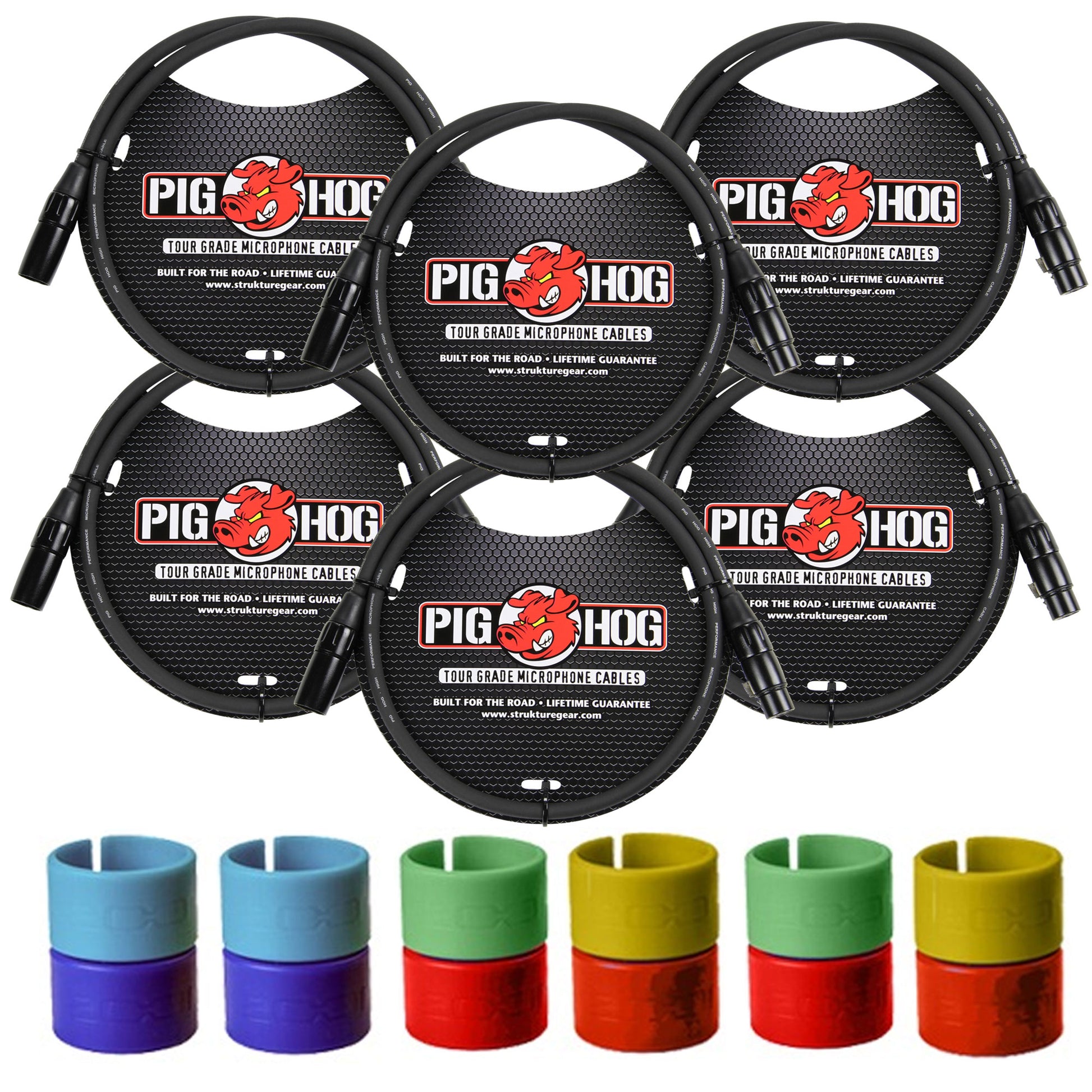 - 6x Pig Hog 8mm XLR Microphone Cable Male to Female 3 Ft Fully Balanced Premium Mic Cable