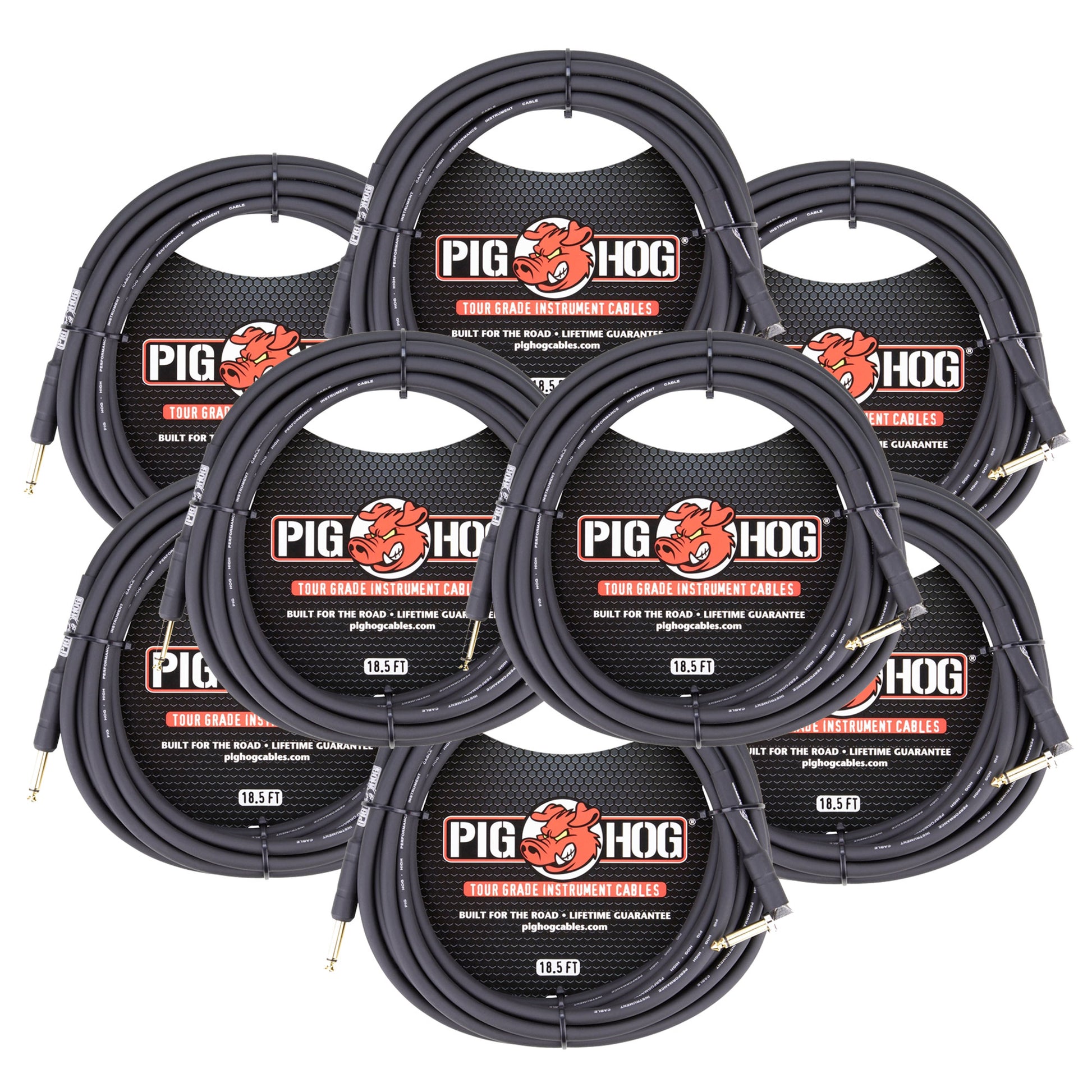 - 8x Pig Hog Tour Grade 18.5ft 1/4" - 1/4" 8mm Instrument Cable Straight to Right Angle Connectors