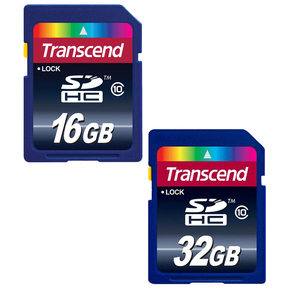 Transcend 16GB and 32GB SecureDigital (SDHC) Memory Card.