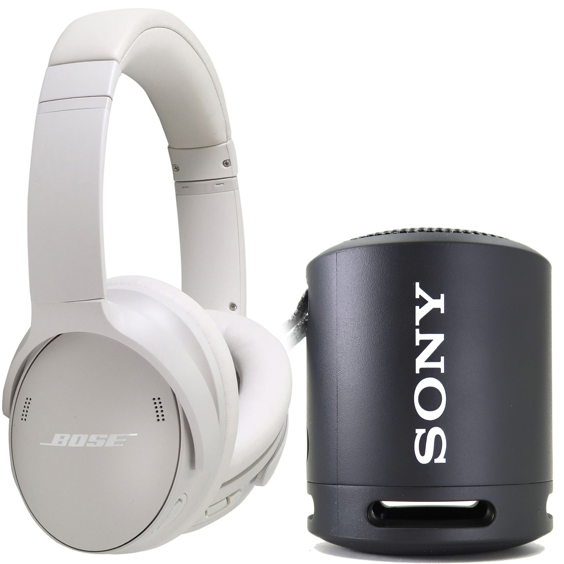 BOSE QUIETCOMFORT WIRELESS OVER-EAR ACTIVE NOISE CANCELING HEADPHONES (WHITE) + SONY SRSXB13/B EXTRA BASS PORTABLE WATERPROOF SPEAKER (BLACK)