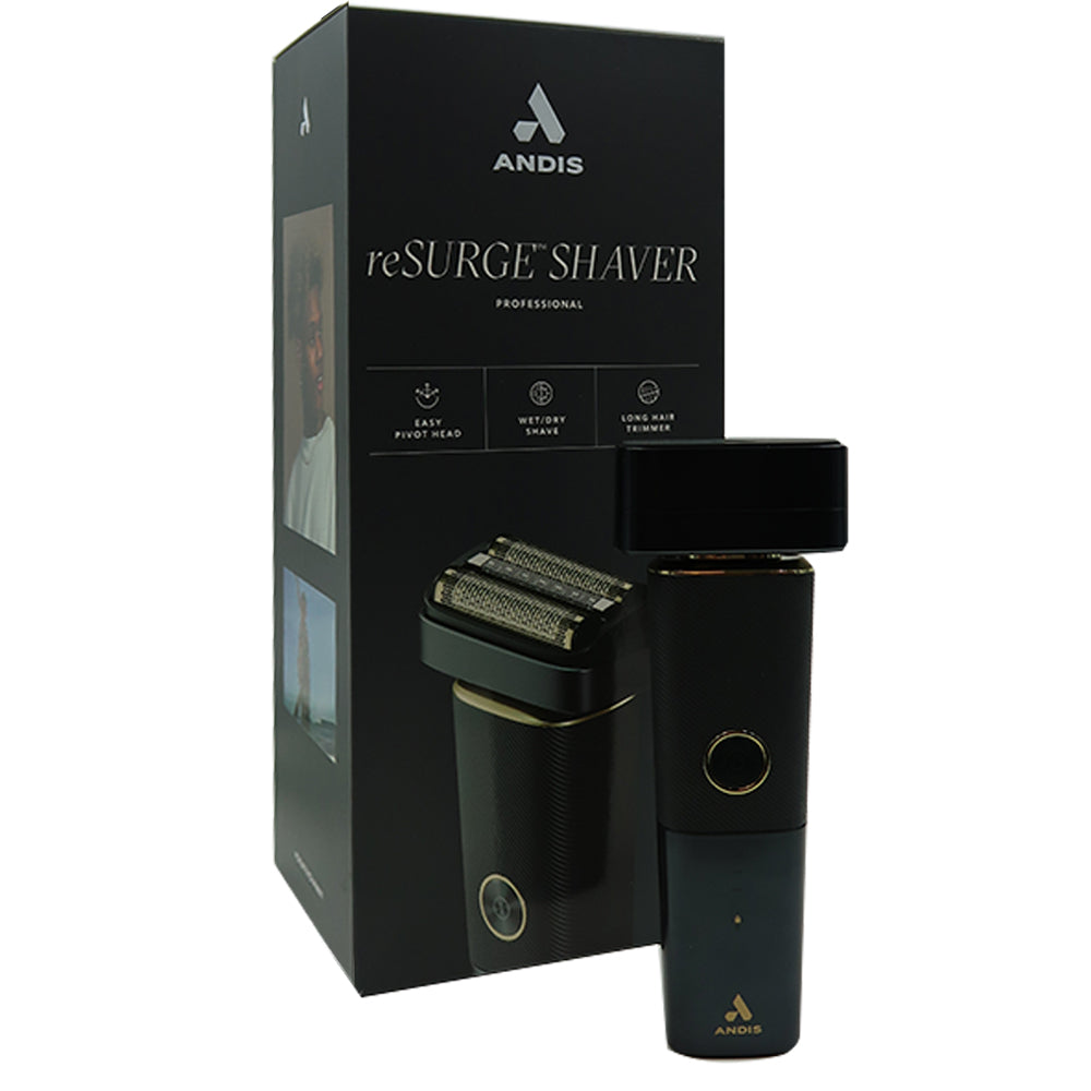 Level up with this sleek, innovative shaver that packs all the punches. Shave, shape and trim on wet or dry skin, and enjoy maximum comfort in the palm of your hand to deliver the smoothest shaves. From the moment the shop doors open to closing time, the reSURGE Shaver was made for all-day use. Designed to elevate your game and packs all the punches: glide through the closest, smoothest shaves. With wide range and maximum versatility, it was made for cutting all hair types, wet or dry, for 60 minutes. Its long-hair trimmer makes prep easy and cuts time shaving, raising the bar for a better experience - for you and your client. Its pivoting head allows for seamless contouring and constant skin contact. And it's comfortable, ergonomic grip delivers less wrist strain so you can keep powering through to create what’s next.