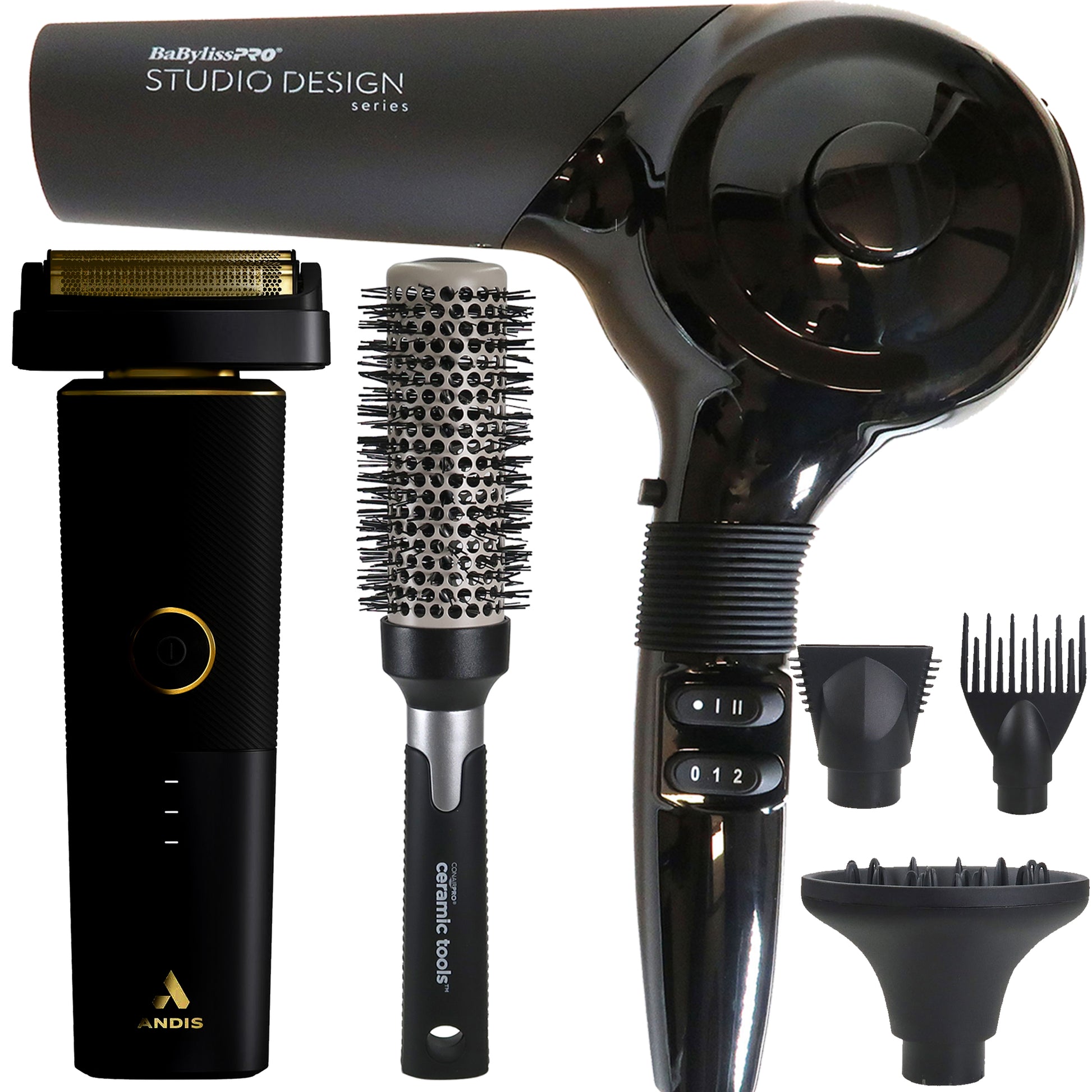 ANDIS 17300 RESURGE PROFESSIONAL LITHIUM TITANIUM FOIL WET / DRY SHAVER MATTE BLACK + BABYLISS PRO STUDIO DESIGN SERIES SENSOR 1875-WATT HAIR DRYER #BCI800UC + CONAIRPRO CERAMIC TOOLS MEDIUM ROUND BRUSH 2" (CPBCTR2)