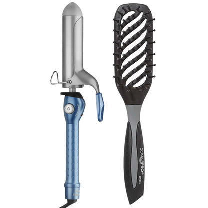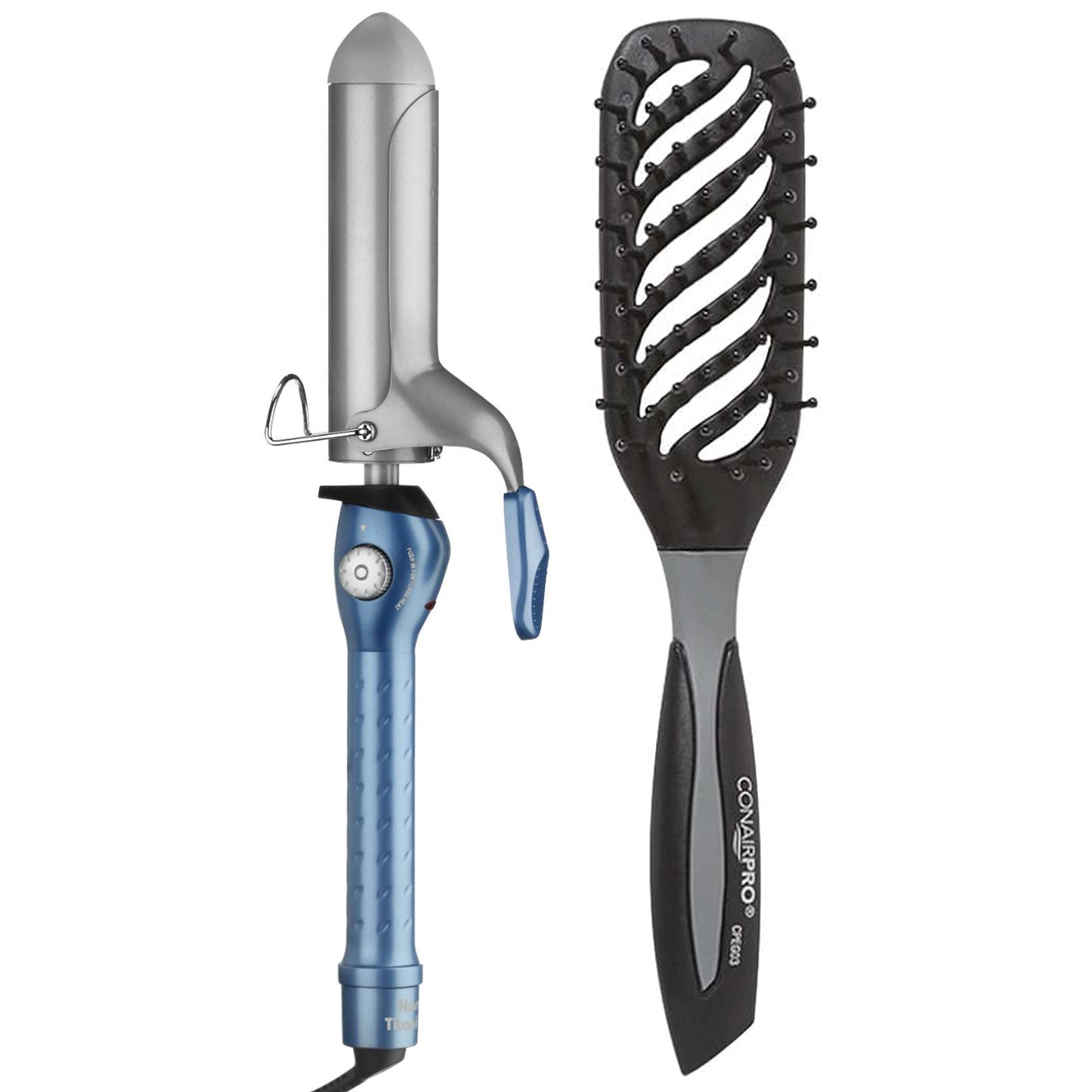 BABYLISS PRO NANO TITANIUM 1½" SPRING CURLING IRON BNT150S + CONAIR PRO ERGO-GRIP VENTED BRUSH COLLECTION ERGONOMICALLY DESIGNED FOR BLOW DRYING