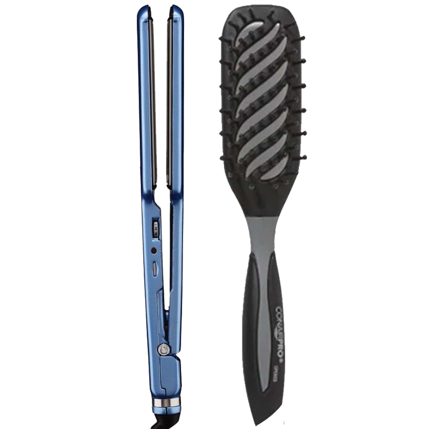 BABYLISS PRO NANO TITANIUM 2" ULTRA-THIN STRAIGHTENER BNT4074TUC + CONAIR PRO ERGO-GRIP VENTED BRUSH COLLECTION ERGONOMICALLY DESIGNED FOR BLOW DRYING