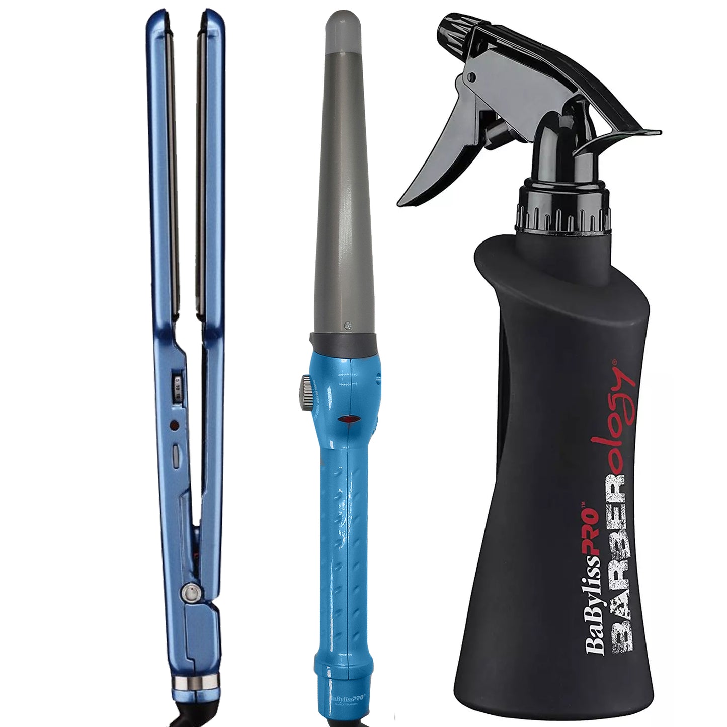BABYLISS PRO NANO TITANIUM 2" ULTRA-THIN STRAIGHTENER BNT4074TUC + BABYLISS PRO NANO TITANIUM CONICURL IRON 1¼ - ¾" #BNT125TB + BABYLISS PRO BSPRAYBOT BARBEROLOGY 10OZ SPRAY BOTTLE