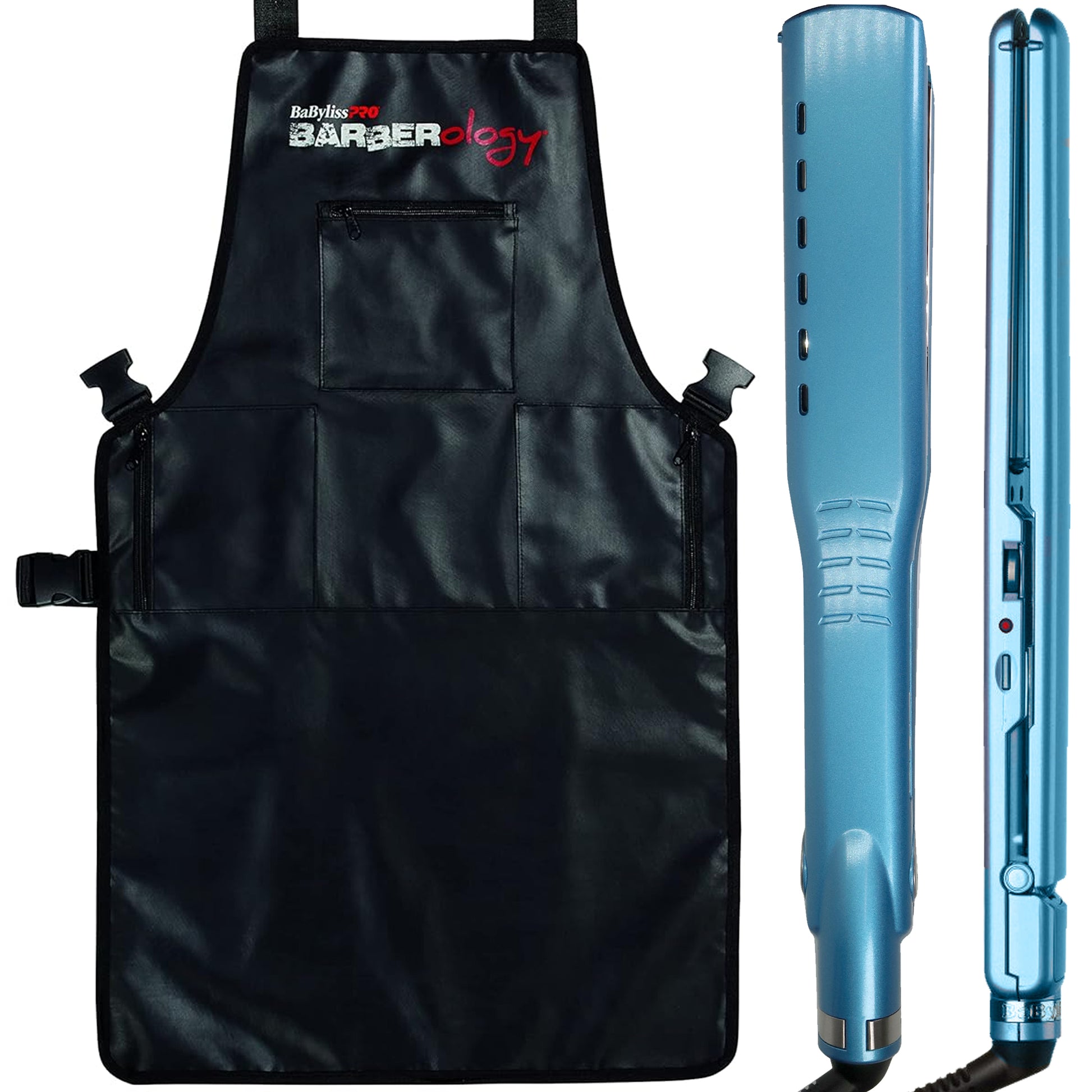 The water-repellent BaBylissPRO Barberology industrial Barber Apron has zippered pockets to help stylists organize their tools of the trade & a PVC base to help keep clothing clean & dry.