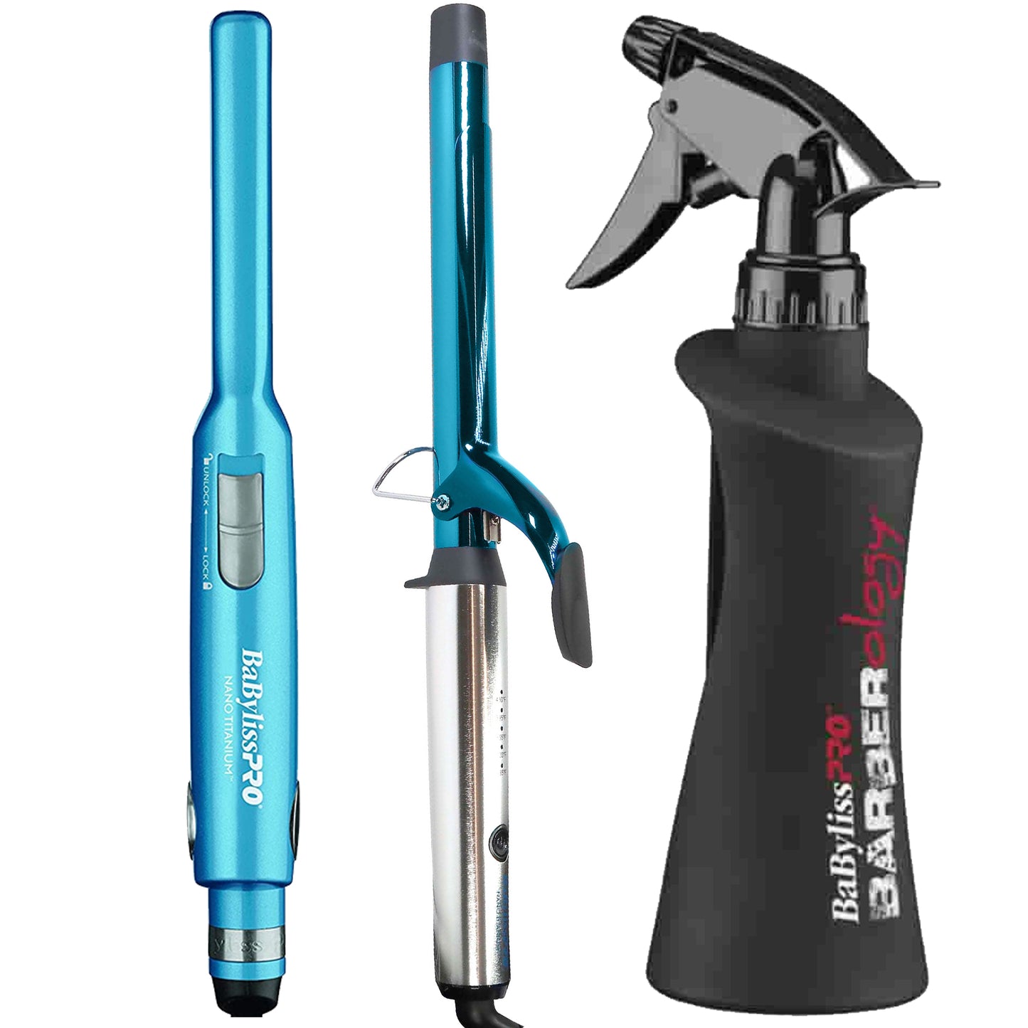 BABYLISS PRO NANO TITANIUM ½” ULTRA-SLEEK IONIC STRAIGHTENER BNT4171TUC + BABYLISS PRO NANO TITANIUM EXTENDED BARREL CURLING IRON - 1" BNTW100XLUC + BABYLISS PRO BSPRAYBOT BARBEROLOGY 10OZ SPRAY BOTTLE