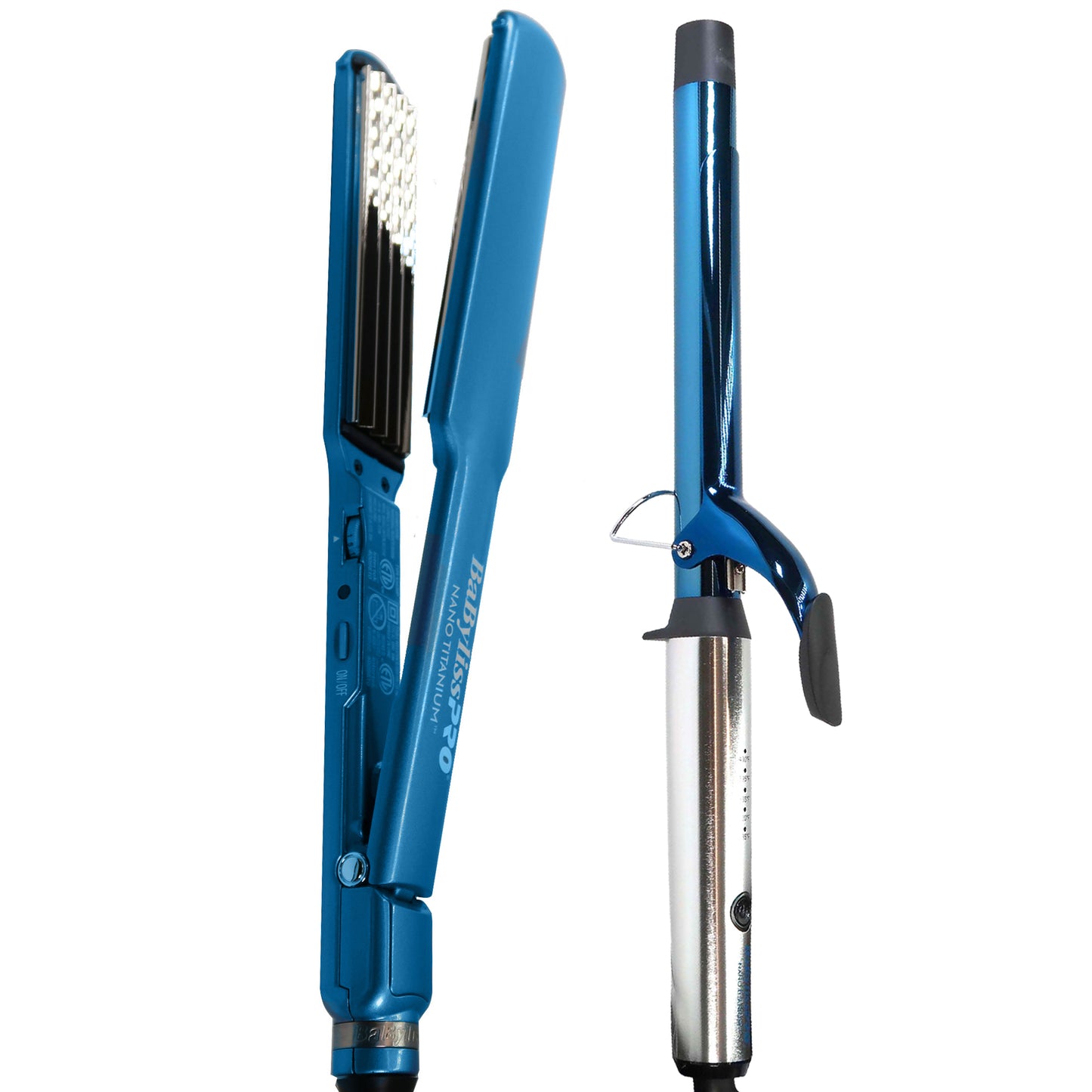 BABYLISS PRO NANO TITANIUM CRIMPER STYLING IRON 1 1/2" BNTCRL3073TUC + BABYLISS PRO NANO TITANIUM EXTENDED BARREL CURLING IRON - 1" BNTW100XLUC