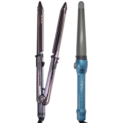 BABYLISS PRO LIMITED EDITION NANO TITANIUM PRIMA 3000 FLAT IRON MIDNIGHT PURPLE - 1¼" #BNTP3000TUC (DUAL VOLTAGE) + BABYLISS PRO NANO TITANIUM CONICURL IRON 1¼ - ¾" #BNT125TB
