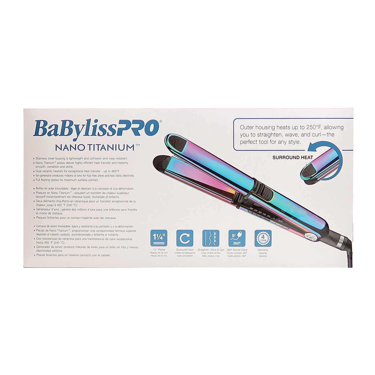 - BaByliss Pro LIMITED EDITION Nano Titanium Prima 3000 Stainless Steel Flat Iron Iridescent - 1¼" #BNTRB3000TUC (Dual Voltage)