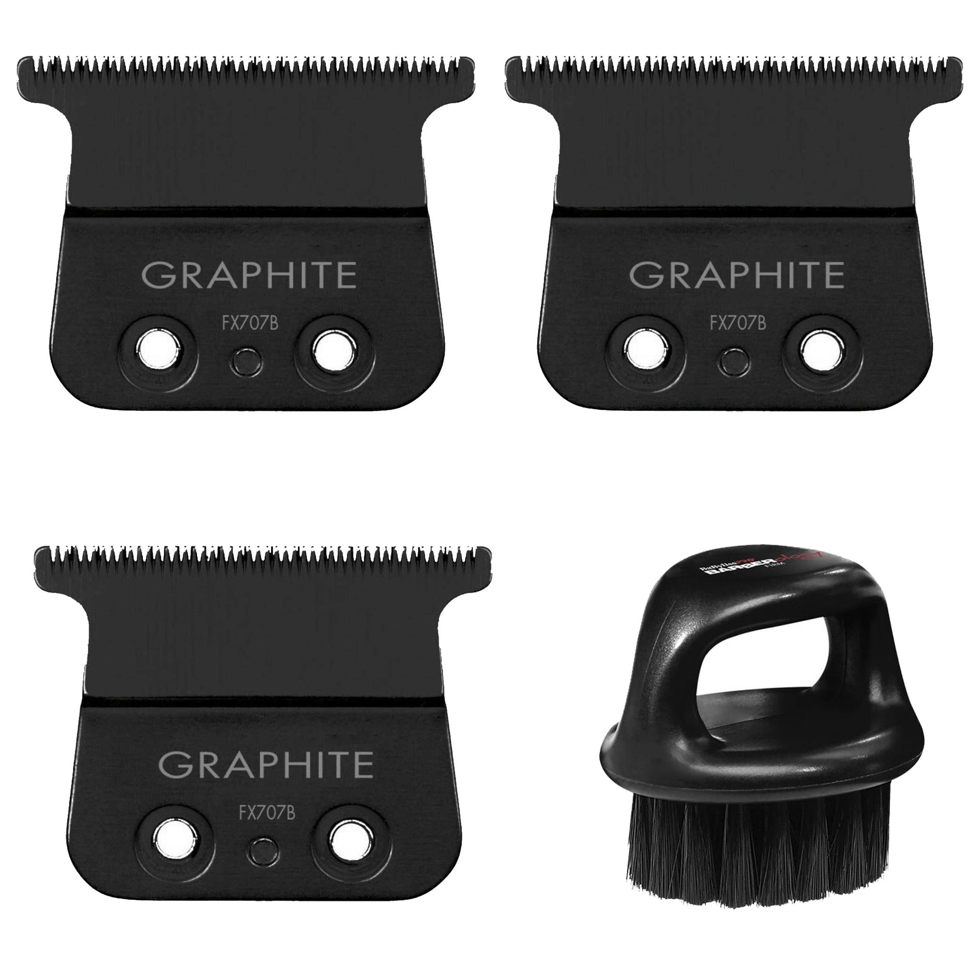 3X BABYLISSPRO FX707B GRAPHITE FINE TOOTH REPLACEMENT T BLADE + FADE SOFT KNUCKLE NECK BRUSH
