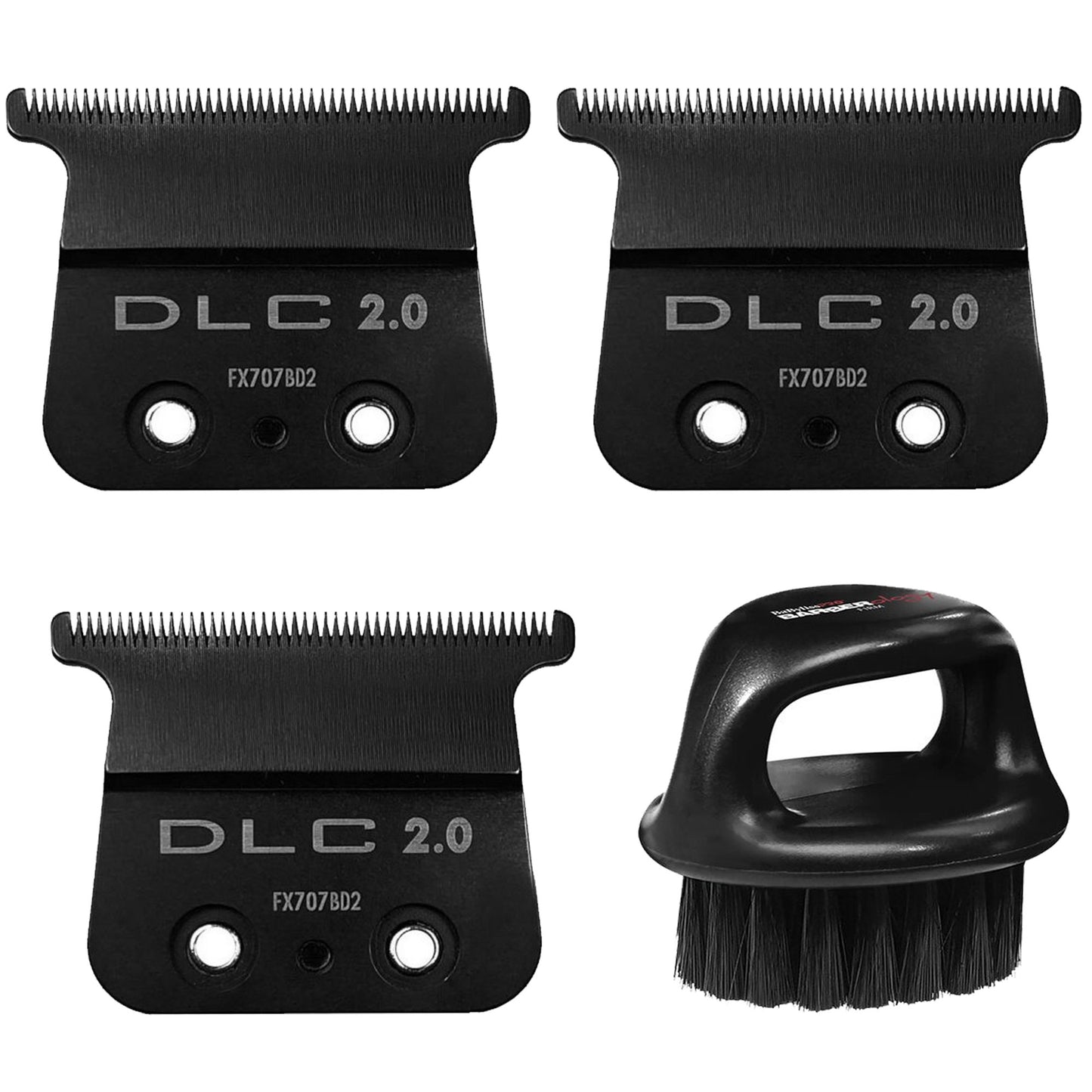3X BABYLISS PRO FX707BD2 DLC 2.0MM DEEP TOOTH T-BLADE + FADE SOFT KNUCKLE NECK BRUSH