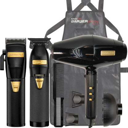 High-performance. Perfectly balanced. Italian made. The BaBylissPRO® BlackFX Sofie Pak Limited Edition Dryer offers the superior engineering and sleek styling that make BabylissPro's GOLDFX collections so popular. Compact housing powered by a high-speed brushless engine allows faster styling and maneuvering. A turbo button boosts wind speed to 100 MPH, making this one of the fastest dryers available. A long, knurled metal handle ensures the ultimate no-slip grip, even with styling products on your hands. Dual heat and speed settings, snap-on concentrator, beard pic, and diffuser make this an essential styling tool.
