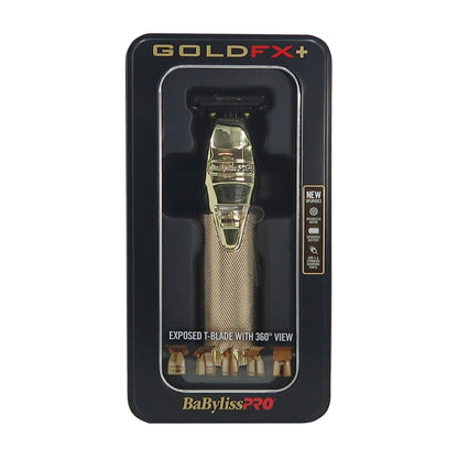 The BaByliss Pro GOLDFX+ Outlining Hair Trimmer is a professional, all metal, cord/cordless lithium outlining hair trimmer. Featuring an exposed T-blade with 360-degree views & upgraded N1 brushless motor with dual ball bearings for efficiency