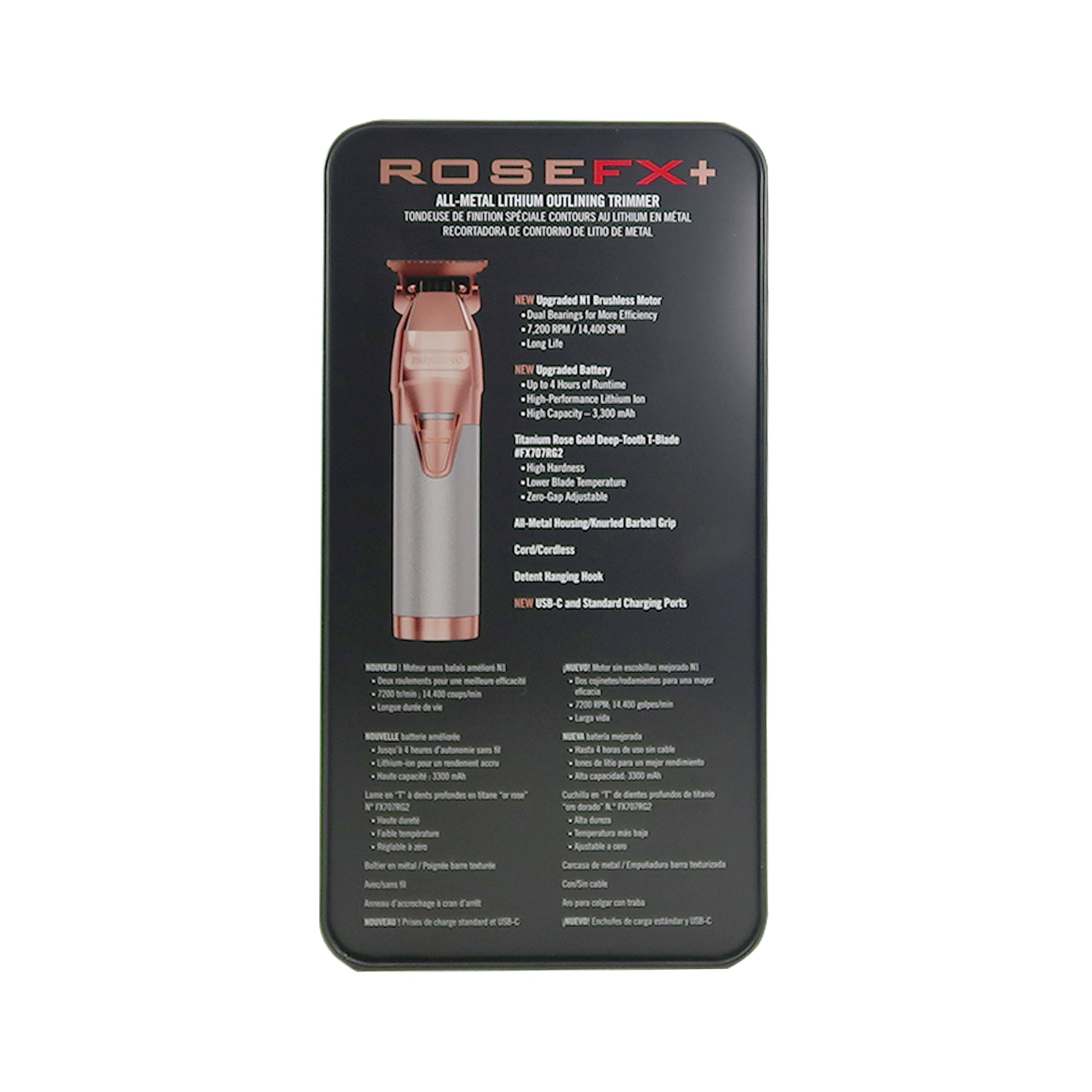 The BaByliss Pro ROSEFX+ Outlining Hair Trimmer is a professional, all metal, cord/cordless lithium outlining hair trimmer. Featuring an exposed T-blade with 360-degree views & upgraded N1 brushless motor with dual ball bearings for efficiency