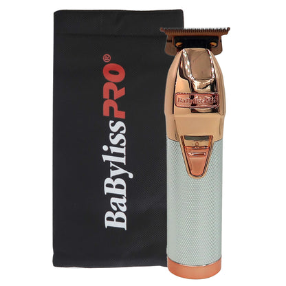 BABYLISS PRO ROSEFX+ PROFESSIONAL CORD/CORDLESS ALL-METAL LITHIUM OUTLINING TRIMMER ROSE GOLD #FX787NRG + BABYLISS PRO BARBER CLIPPER AND TRIMMER POUCH
