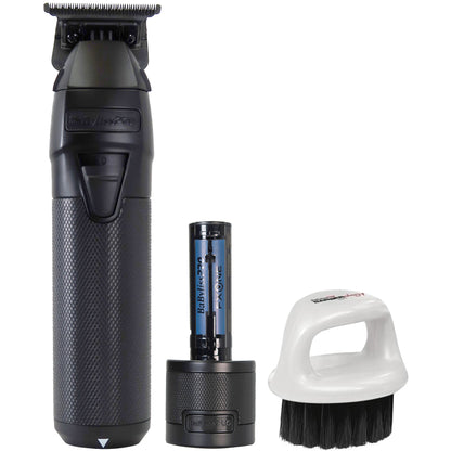 BABYLISS PRO FXONE BLACKFX ALL-METAL INTERCHANGEABLE-BATTERY TRIMMER #FX799MB + BABYLISSPRO BARBEROLOGY FADE SOFT KNUCKLE NECK BRUSH WHITE