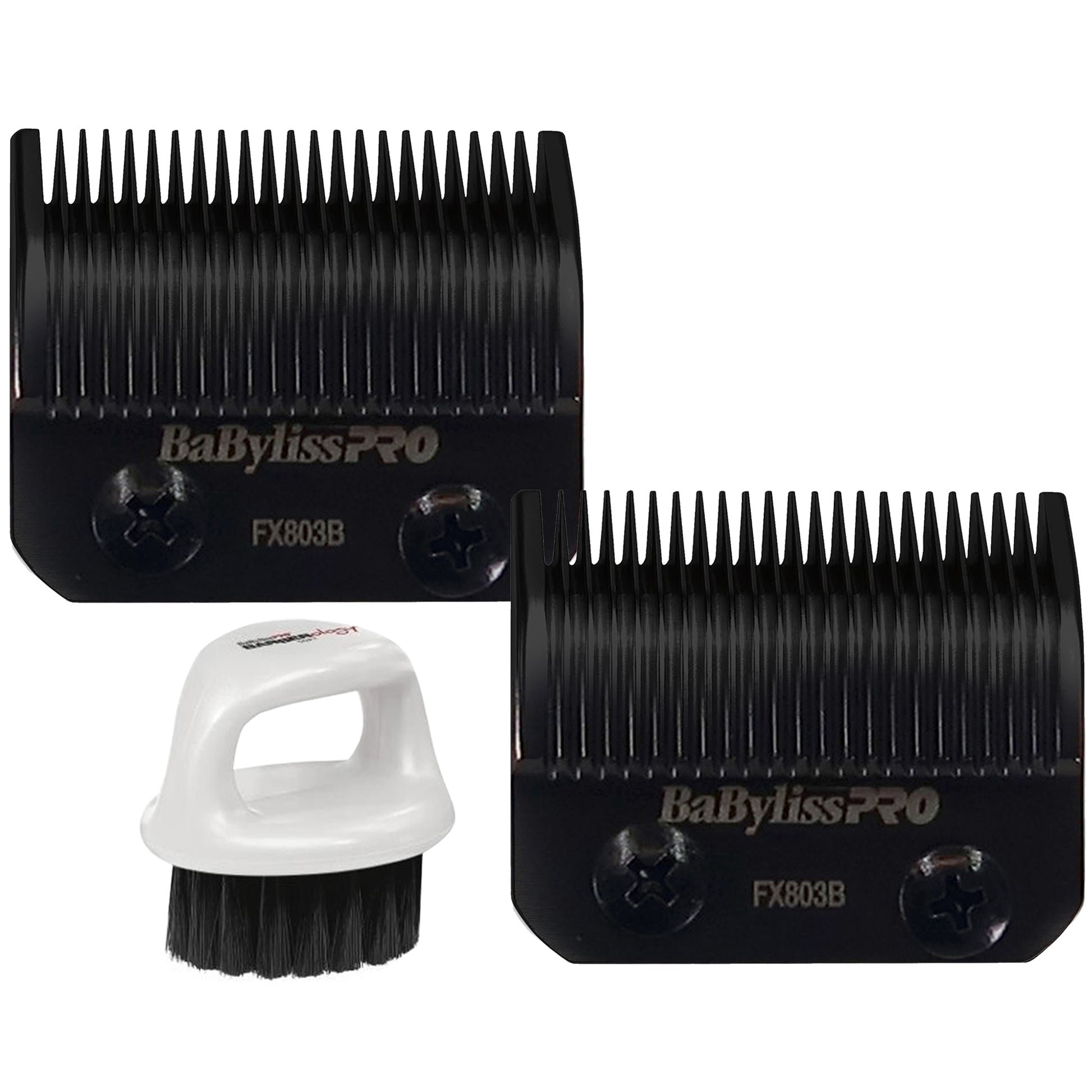 2X BABYLISS PRO REPLACEMENT BLACK GRAPHITE TAPER BLADE #FX803B FITS FX870, FX825, AND FX673 MODELS + BABYLISSPRO BARBEROLOGY FADE SOFT KNUCKLE NECK BRUSH WHITE