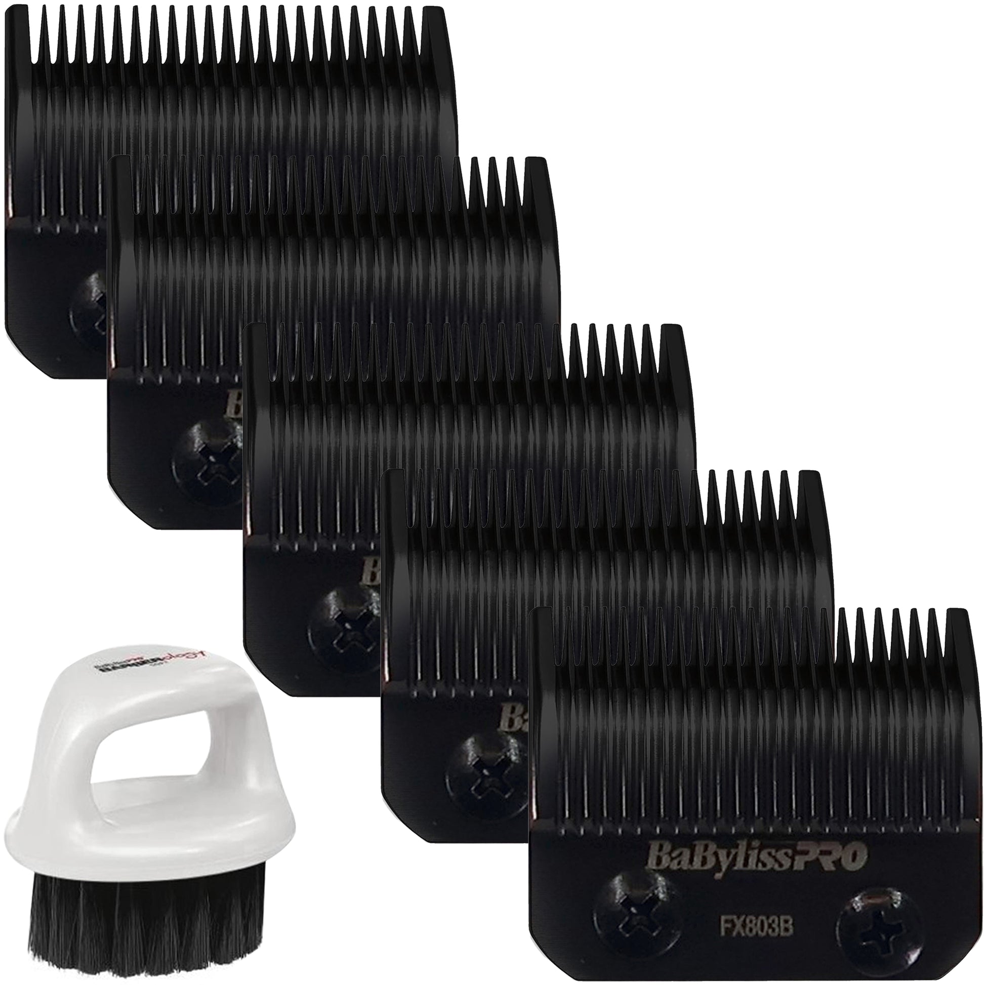 5X BABYLISS PRO REPLACEMENT BLACK GRAPHITE TAPER BLADE #FX803B FITS FX870, FX825, AND FX673 MODELS + BABYLISSPRO BARBEROLOGY FADE SOFT KNUCKLE NECK BRUSH WHITE