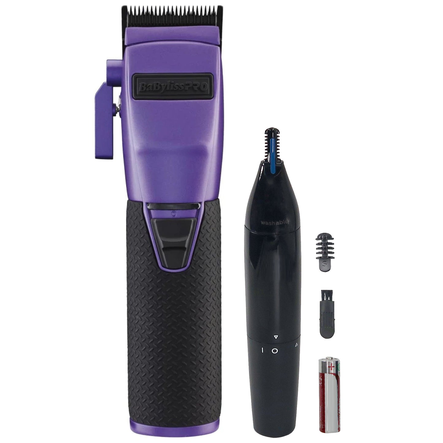BABYLISS PRO FX870 PI BOOST+ INFLUENCER COLLECTION FRANK DA BARBER CORDLESS CLIPPER - PURPLE + ULTIMATE COMFORT NOSE TRIMMER 1000 BATTERY POWERED NT1605/60 FOR NOSE, EAR, AND EYEBROWS