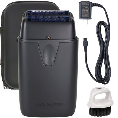 BABYLISS PRO LIMITED EDITION UVFOIL UV-DISINFECTING METAL DOUBLE FOIL SHAVER #FXLFS2MB (MATTE BLACK) + BABYLISS PRO BARBEROLOGY FOIL SHAVER STORAGE CASE #FXFS2BPCASE (BLACK) + REPLACEMENT POWER CORD + FADE SOFT KNUCKLE NECK BRUSH