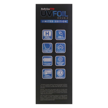 - BaByliss Pro LIMITED EDITION UVFOIL UV-Disinfecting Metal Double Foil Shaver #FXLFS2MB (Matte Black)