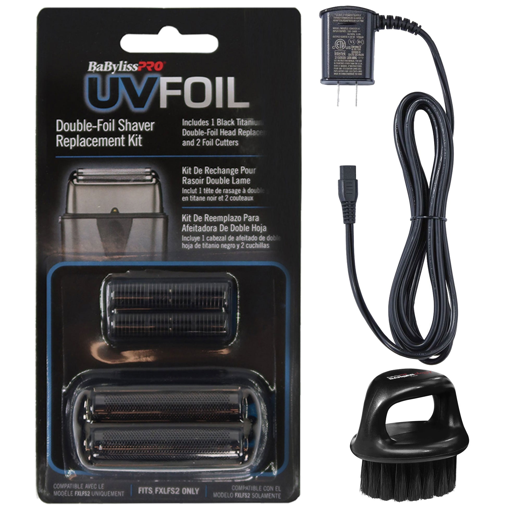 BABYLISS PRO UVFOIL DOUBLE-FOIL SHAVER REPLACEMENT FXLRF2 + BABYLISSPRO FOIL SHAVER REPLACEMENT POWER CORD CHARGER + FADE KNUCKLE BRUSH