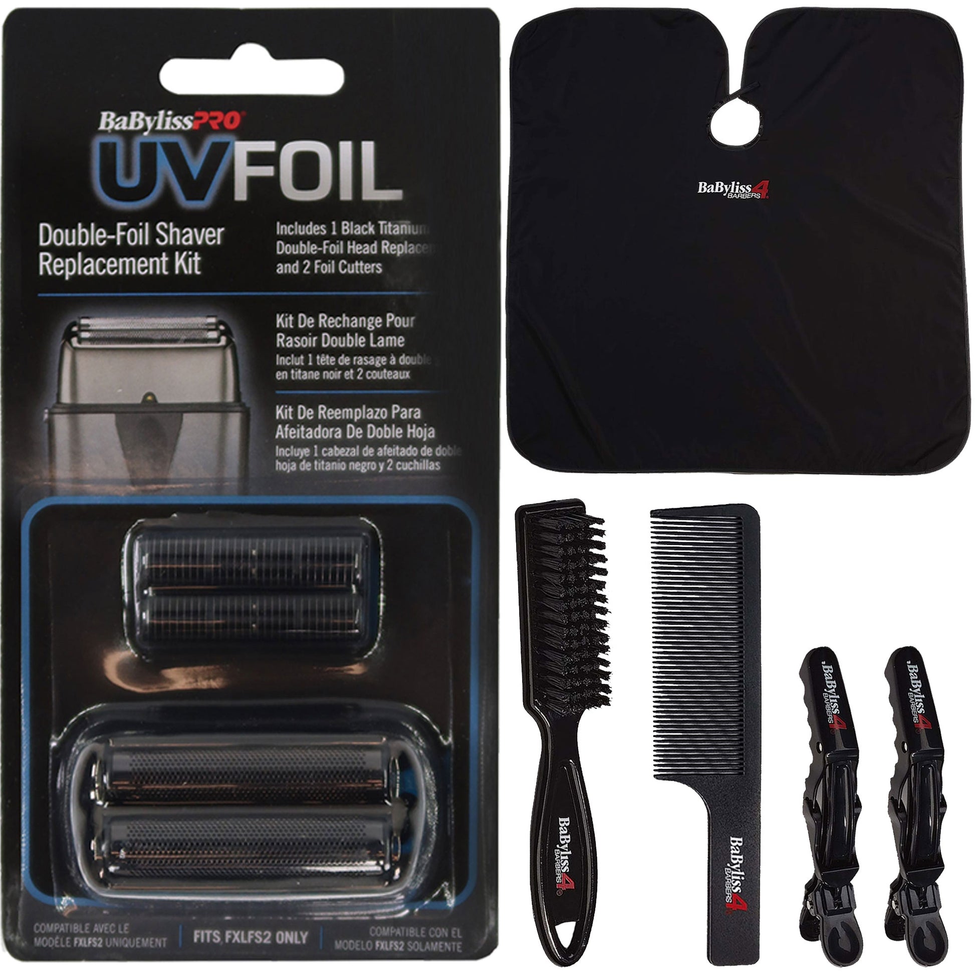 BABYLISS PRO UVFOIL DOUBLE-FOIL SHAVER REPLACEMENT FXLRF2 + BABYLISS 4 BARBERS ESSENTIAL BARBER KIT BBARBKIT