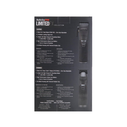 The LimitedFX Black Trimmer & Clipper Gift Set offers two professional hair styling tools in one. High-performance, metal housing & rubber grip, by BaByliss Pro.