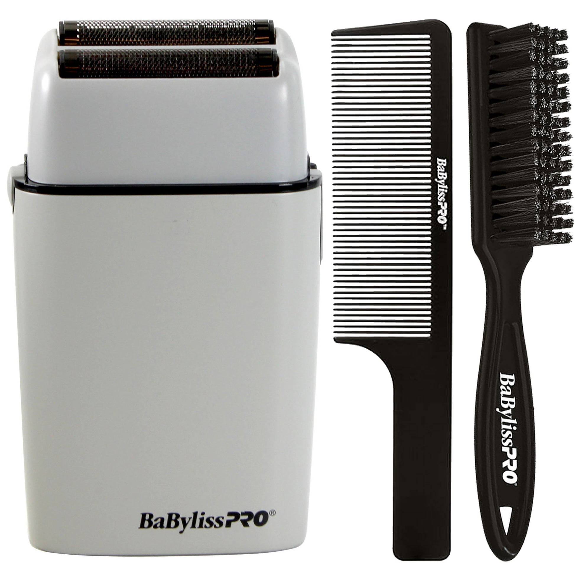 BABYLISS PRO LIMITED EDITION CORDLESS METAL DOUBLE FOIL SHAVER (GRAY) FXFS2GY + FADE BRUSH BPFADEB + 9" CLIPPER COMB