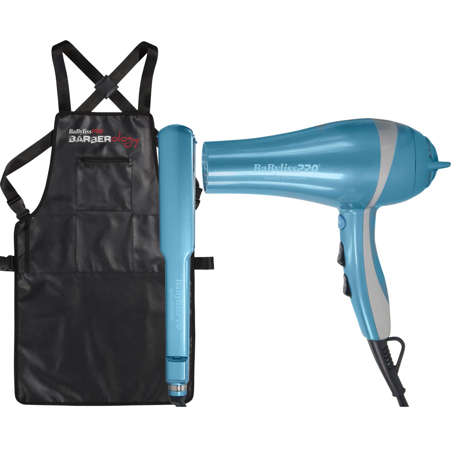 BABYLISS PRO LIMITED EDITION NANO TITANIUM 2000-WATT IONIC DRYER & 1½" ULTRA-THIN STRAIGHTENING IRON COMBO #BNTPP58-24 + BABYLISS PRO BARBEROLOGY INDUSTRIAL BARBER APRON