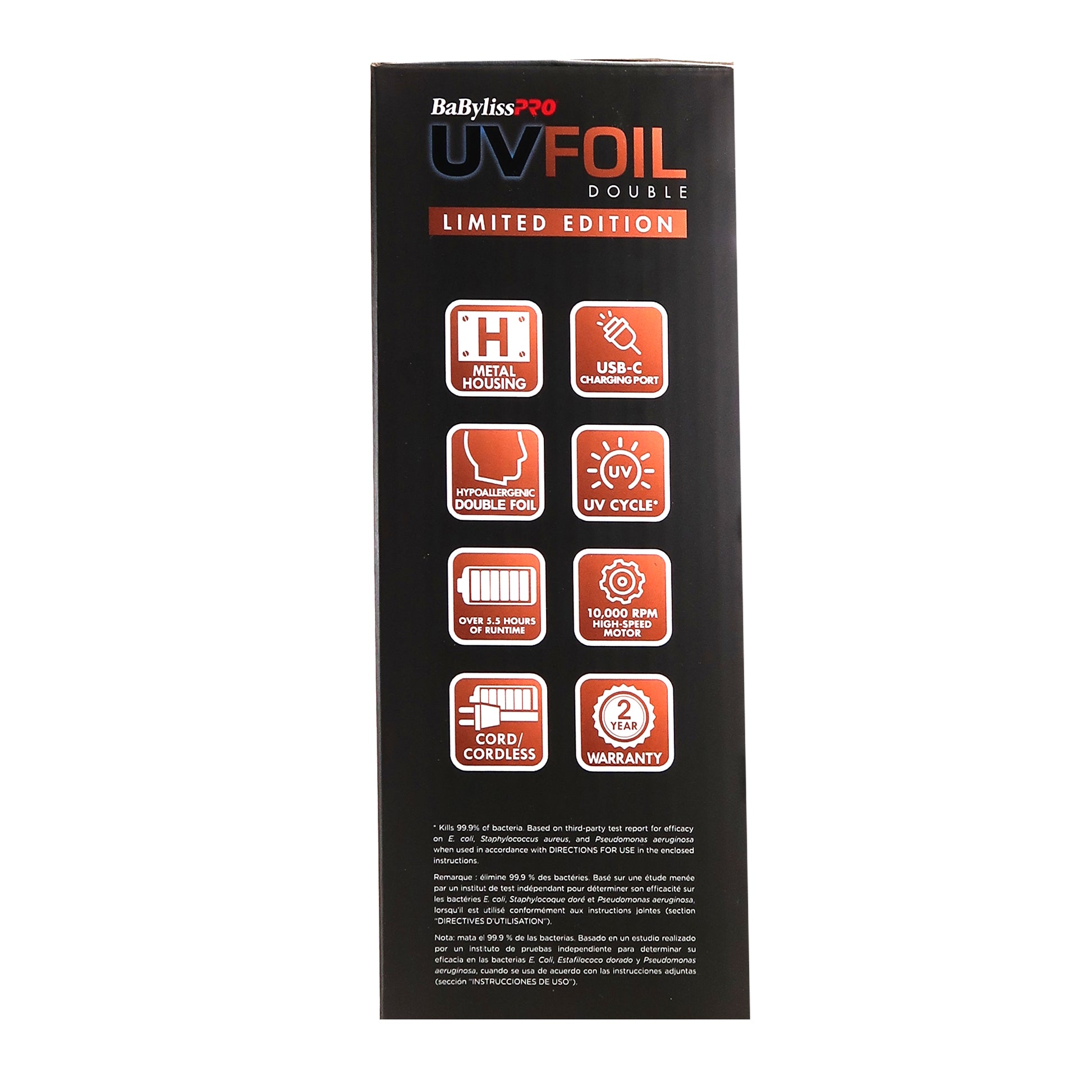 - BaByliss Pro LIMITED EDITON UVFOIL UV-Disinfecting Metal Double Foil Shaver #FXLFS2RG (Rose Gold)