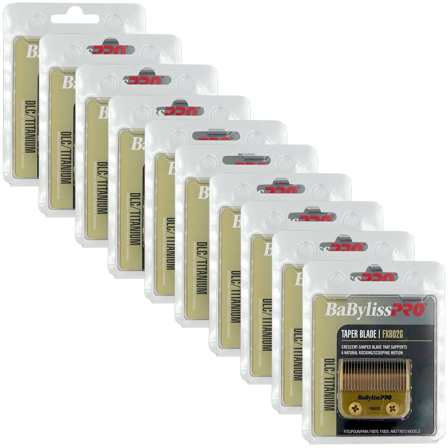 This Gold Titanium Taper Blade can be used with any FX870, FXF880 or FX810 clipper model. Use it for a precise, clean cut. It's made from high strength hypoallergenic titanium and fits all 2-hole blade systems
