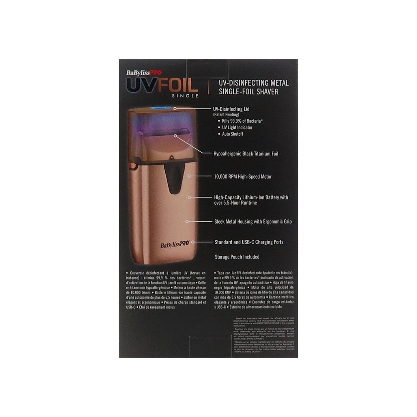 BaByliss Pro LIMITED EDITION UVFOIL UV-Disinfecting Metal Single Foil Shaver - Rose Gold #FXLFS1RG