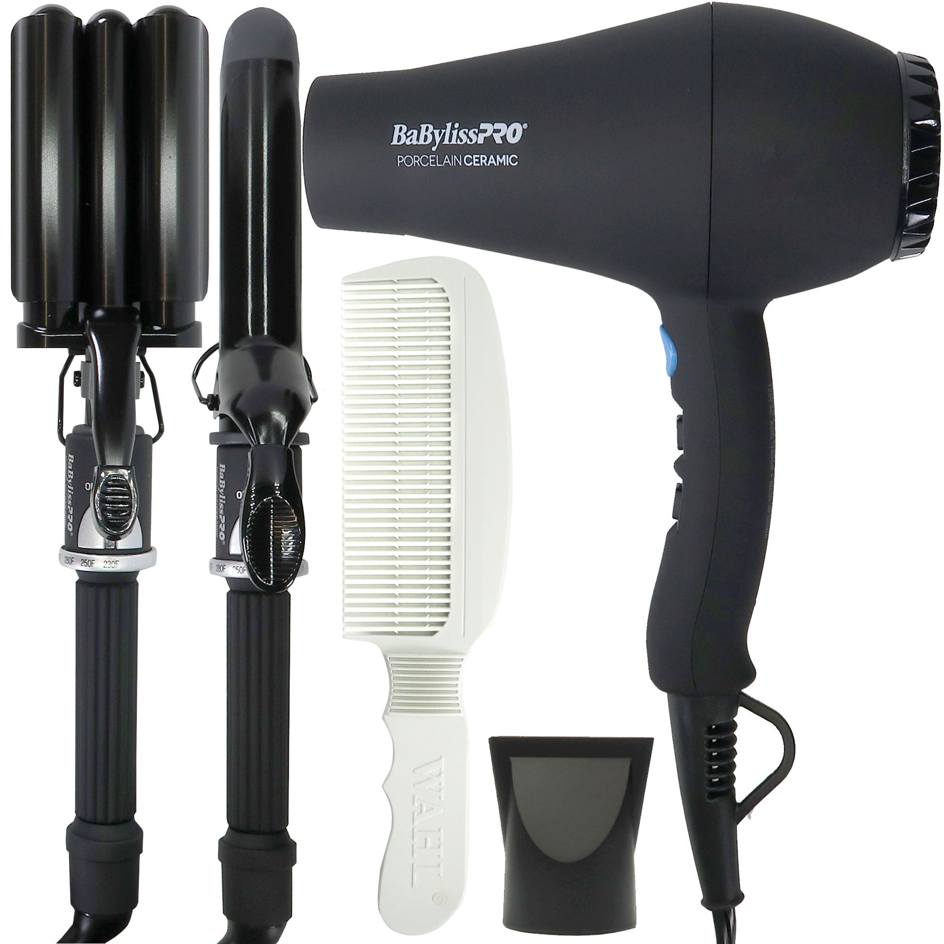 BABYLISS PRO PORCELAIN CERAMIC GIFT BOX (DRYER, WAVER, CURLING IRON) BLACK #BPPP7 + WAHL FLAT TOP COMB WHITE #3329-100