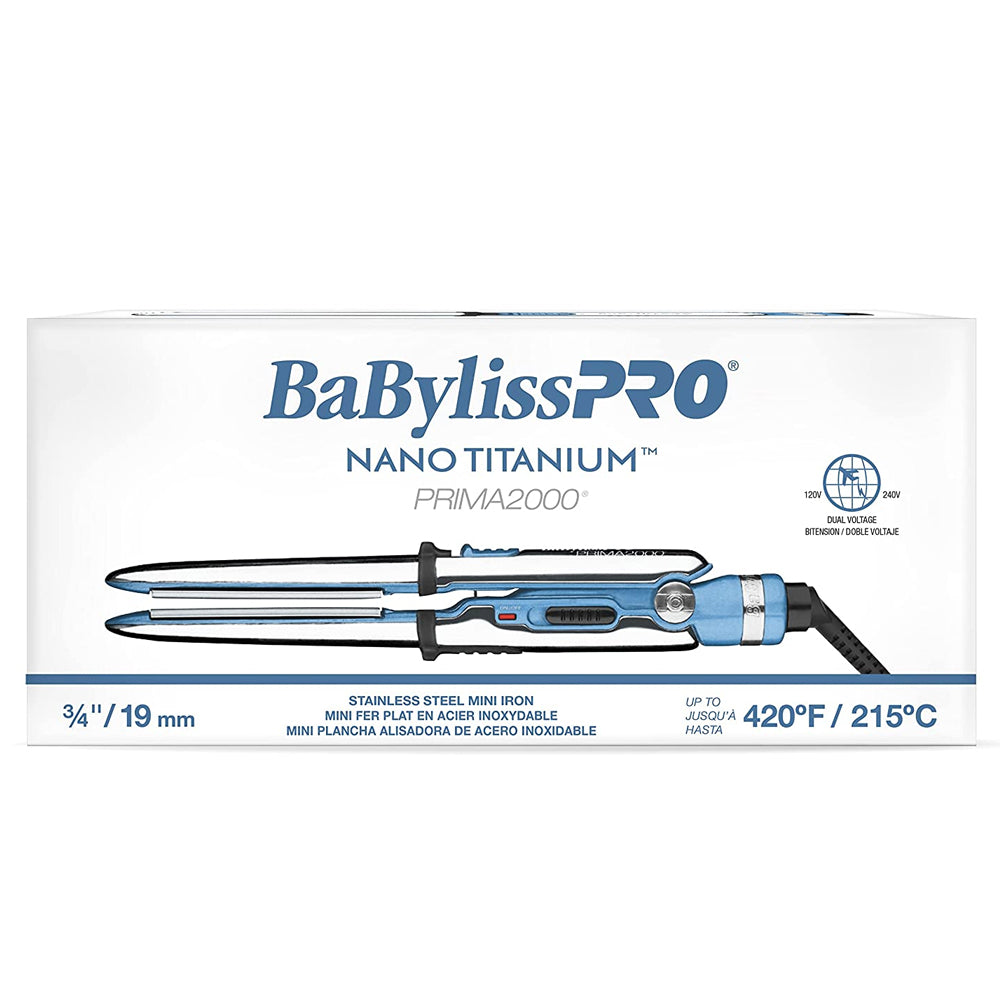 BaBylissPRO Nano Titanium Prima 2000 Stainless Steel Mini Iron - BNT2000UC, 0.75 Inch Flat Iron