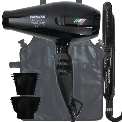 BABYLISS PRO PORTOFINO 200 WATTS DRYER #BPOR1 + BABYLISS PRO LIMITED EDITION NANO TITANIUM PROMA FLAT IRON 1-1/4" #BNTBK3000TUC + INDUSTRIAL BARBER APRON