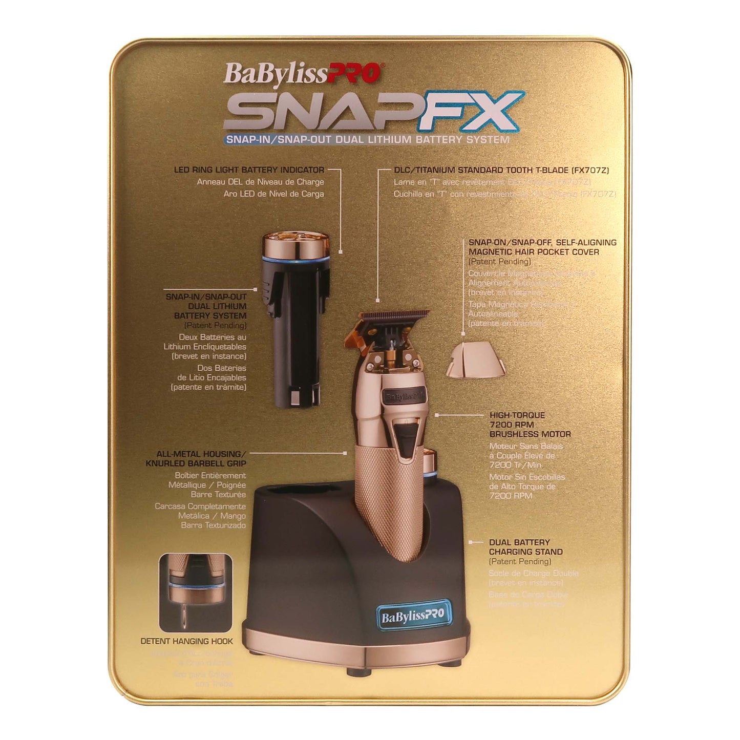 Introducing the new BaBylissPRO SNAPFX. For the first time ever, the power of UNLIMITED cordless runtime is in your hands with our patent-pending, industry-first dual battery system. Effortlessly snap in/snap out the high-capacity battery cartridges while you work. Charge one cartridge while using the other, enabling you to cut for as long as you want, client after client. The new BaBylissPRO SNAPFX: The revolutionary power system that keeps going as long as you do.