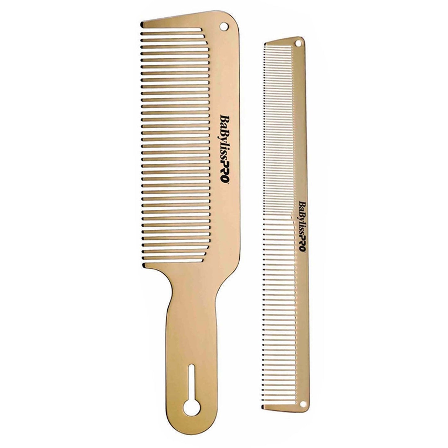 BABYLISS PRO LIMITED EDITION SNAP FX CORDLESS TRIMMER WITH SNAP IN/OUT DUAL LITHIUM BATTERY W/ BASE #FX797GI + BABYLISS PRO BARBEROLOGY INDUSTRIAL BARBER APRON + BABYLISS PRO BARBEROLOGY GOLDFX METAL COMB SET 9" CLIPPER COMB AND 7.5" CUTTING COMB