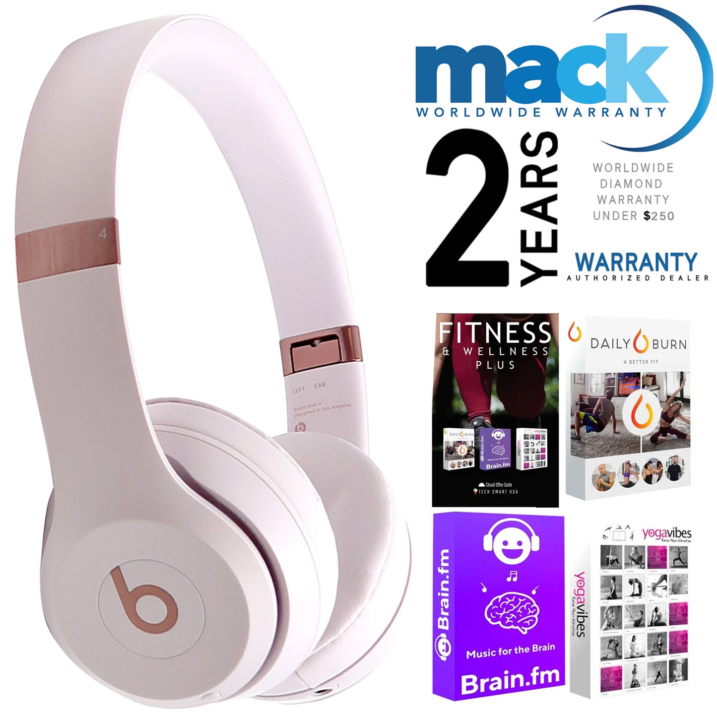 BEATS BY DR. DRE BEATS SOLO 4 WIRELESS ON-EAR HEADPHONES (CLOUD PINK) + FITNESS AND WELLNESS PLUS SOFTWARE + MACK WORLDWIDE DIAMOND 2 YEAR WARRANTY