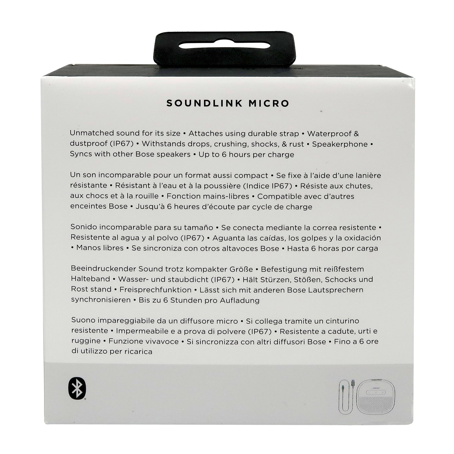 - The SoundLink Micro is compact and light enough at 10 oz for daily travel. This speaker is designed for ease of use and has on-device power and volume buttons, as well as a multi-function button to control music playback or your smartphone's digital assistant.