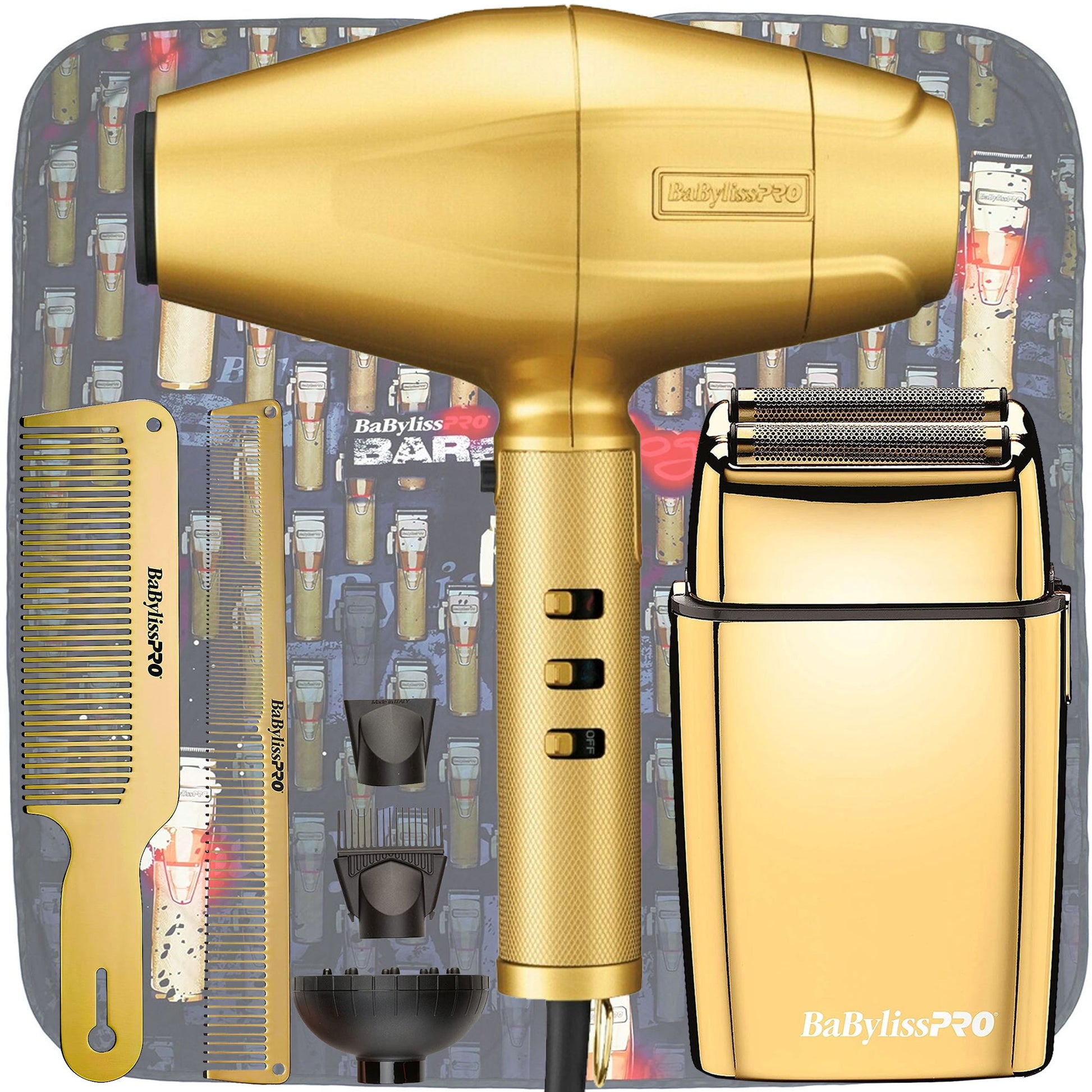 BABYLISSPRO FOIL FX02 FXFS2G CORD/CORDLESS + BABYLISSPRO FXBDG1 GOLDFX TURBO DRYER + BABYLISSPRO GOLDFX METAL COMB SET + BABYLISSPRO BARPER CAPE WITH SNAP BUTTON CLOSURE