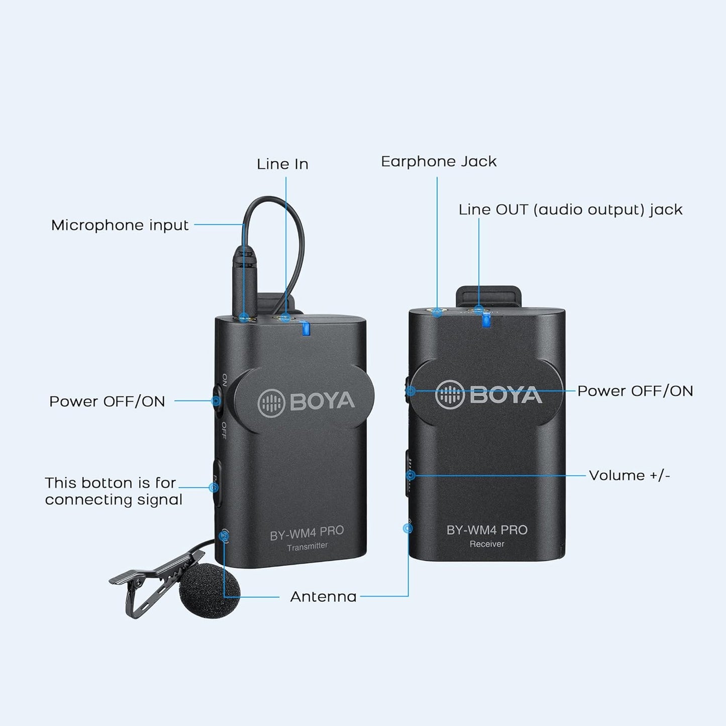 - BOYA BY-WM4 PRO Digital Camera-Mount Wireless Omni Lavalier Microphone System (2.4 GHz)