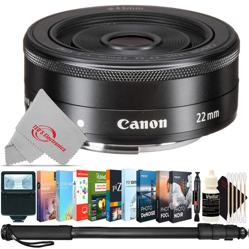 The Canon EF-M 22mm f/2 STM Lens is a moderate wide-angle lens that's exclusively designed for the EOS M Digital Camera. It features smooth and continuous AF with a built-in stepping motor, as well as a seven blade circular aperture. The lens is lightweight and small enough to carry around with you everywhere. Plus, it has a minimum focusing distance of 5.9" (15 cm) and a bright f/2 aperture, which affords exceptional low-light performance.